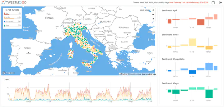 Tweetmood Feb 9, 2022 Go to Project Site Application Screenshot Data Visualization Text Analysis Kode Srl A DATA SCIENCE APPROACH TO KNOWLEDGE DISCOVERY WE DEVELOP AI-BASED SOLUTIONS USING A DATA DRIVEN APPROACH. STARTING FROM UNSTRUCTURED AND INCOMPLETE DATA WE GENERATE VALUE BY INNOVATING PROCESSES AND PRODUCTS. Related Migrant Map Tannery plant digitalization Grafana Server Monitoring OEE Dashboard Geo-Indicators Visualization